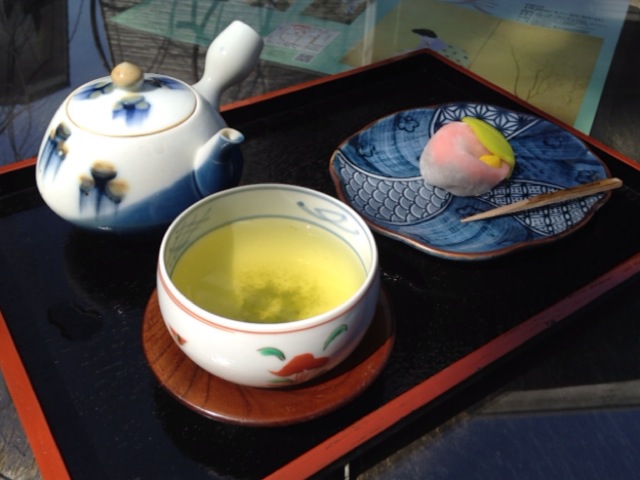 煎茶と和菓子。春先の陽だまり。緋毛氈。