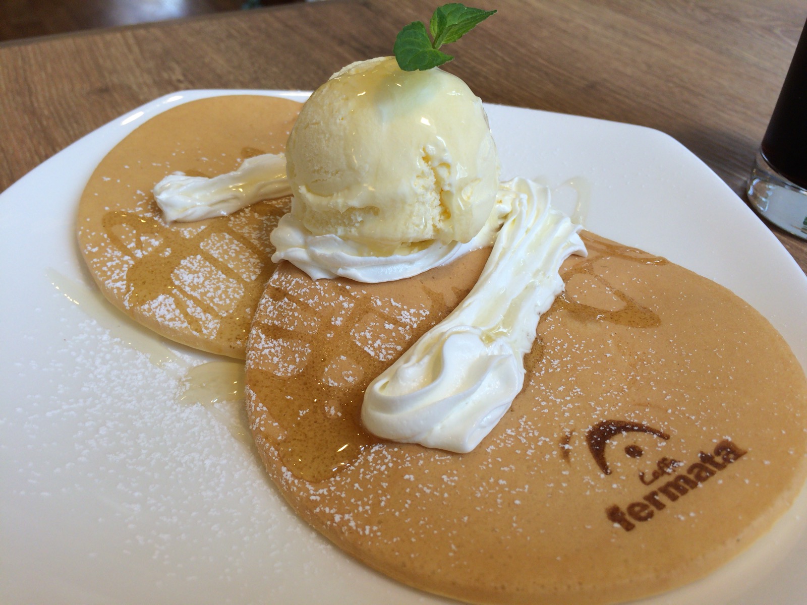 福岡の白金茶房のような焼印付のシンプルなパンケーキに注目。