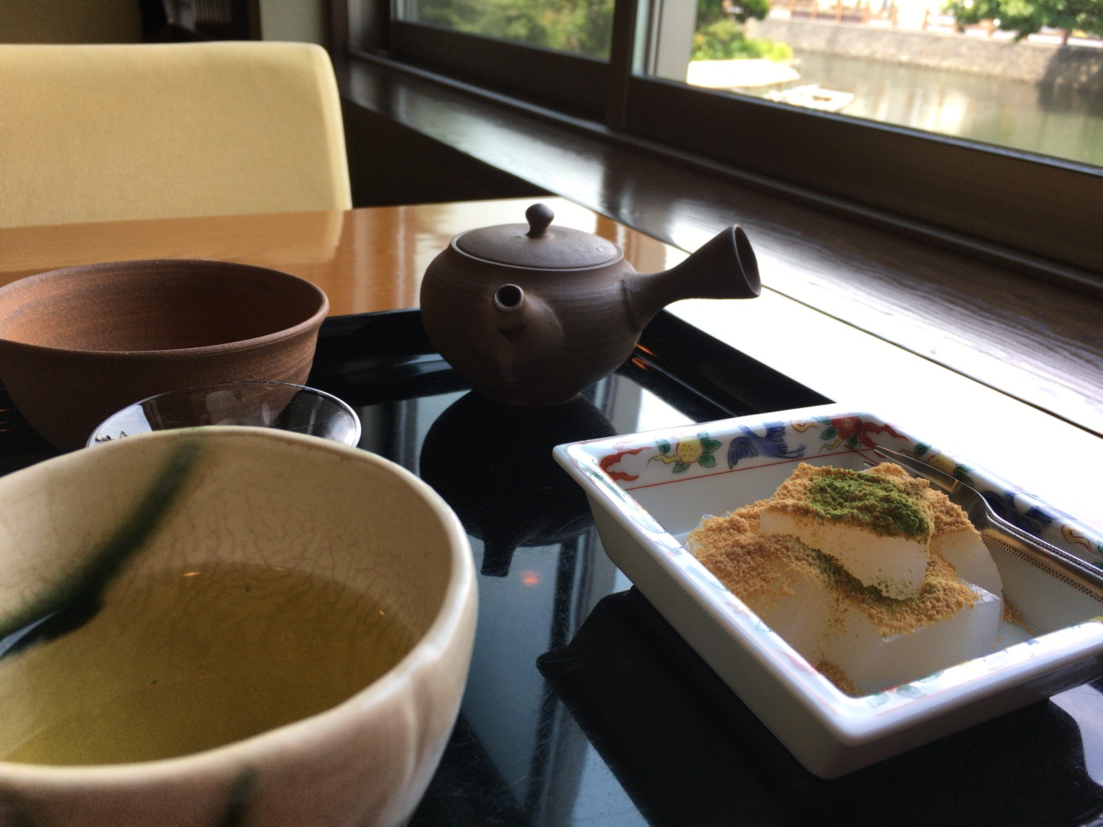 Tea and Warabi Mochi. Nice.