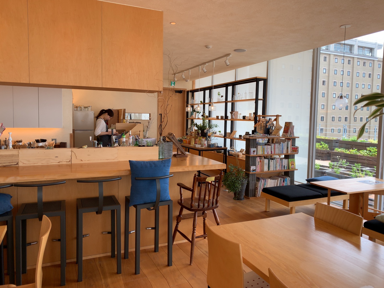 店内に入ると、明るく開放的でカジュアルな様子が広がります。