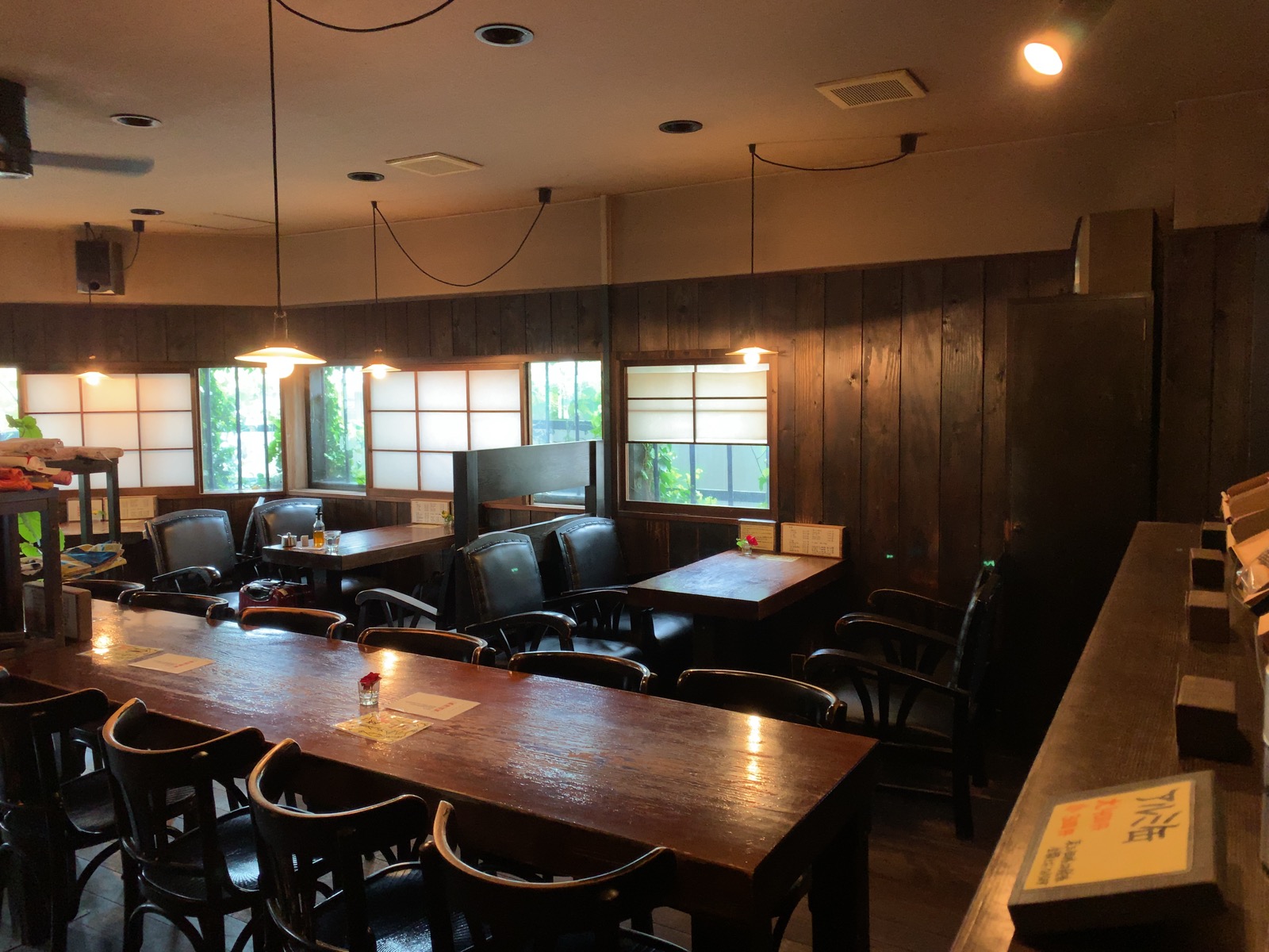 どっしりとした椅子やテーブルで、安定感のある落ち着いた雰囲気です。