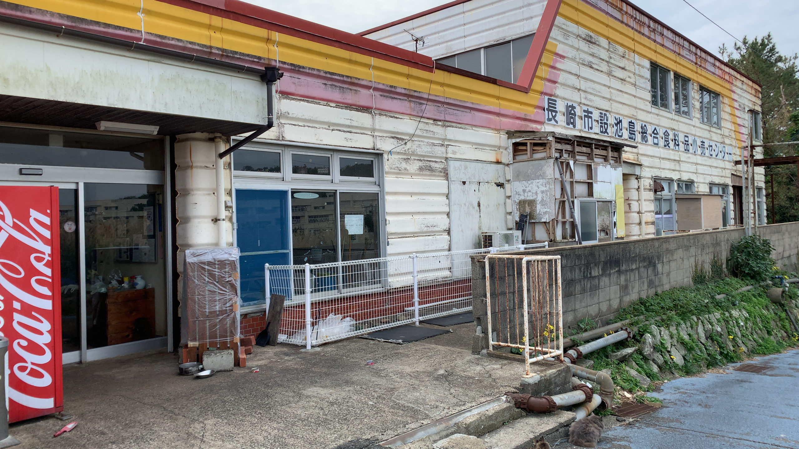 The building has a sign that says “Nagasaki City Ikeshima General Food Retail Center”, which tells us that it used to be a market.