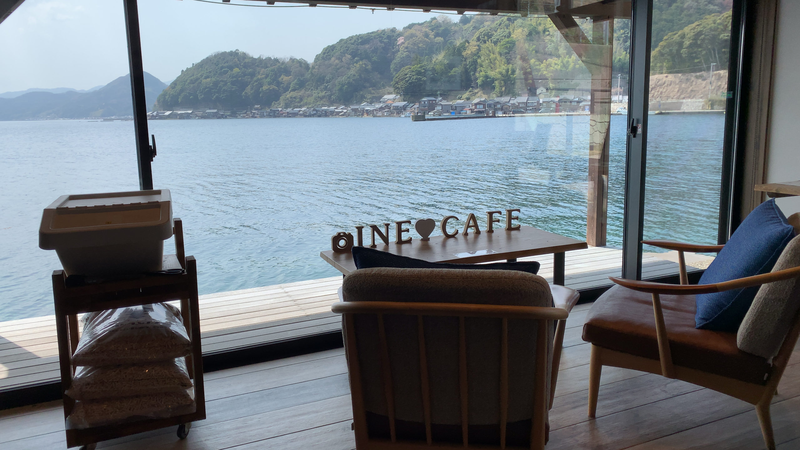 舟屋を活かして、水際スレスレに建てられたカフェ。