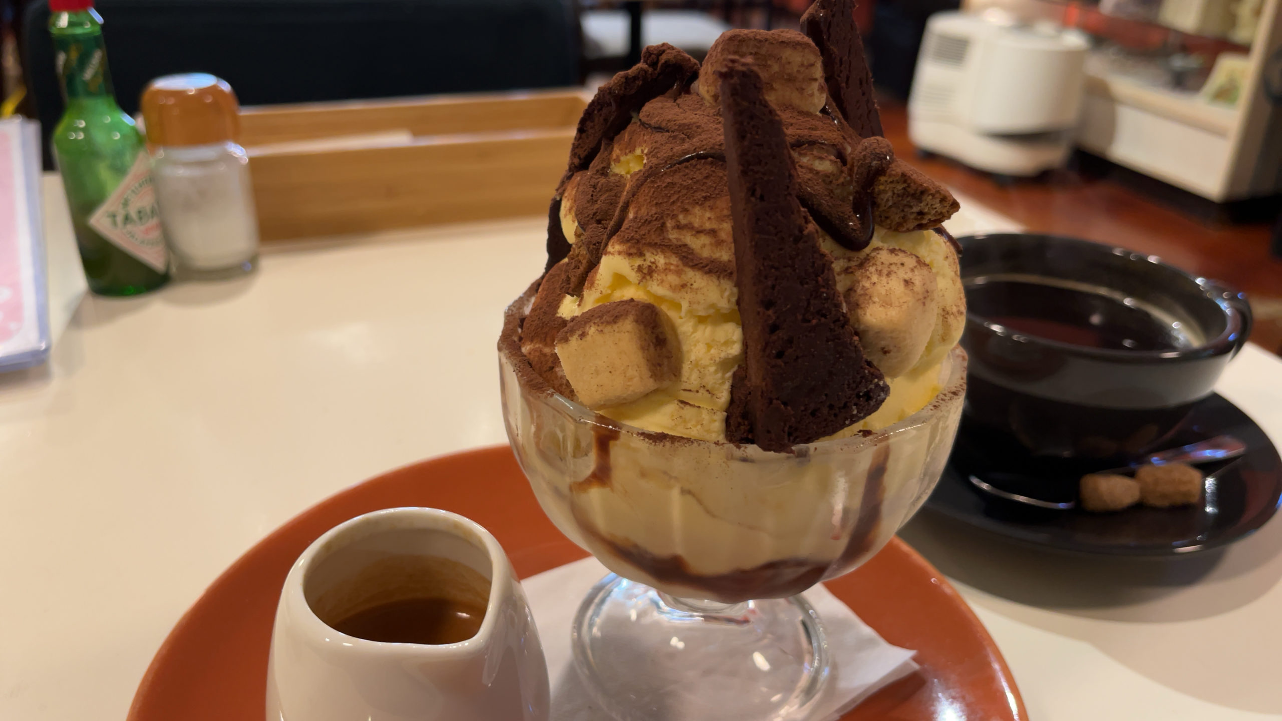 パフェもケッコウもりもりに盛られているので、必然ちょっとづつエスプレッソをかけることになるわけだけど、このスタイルはこのスタイルで、エスプレッソを自分で調整しながら楽しめるのでいいね。