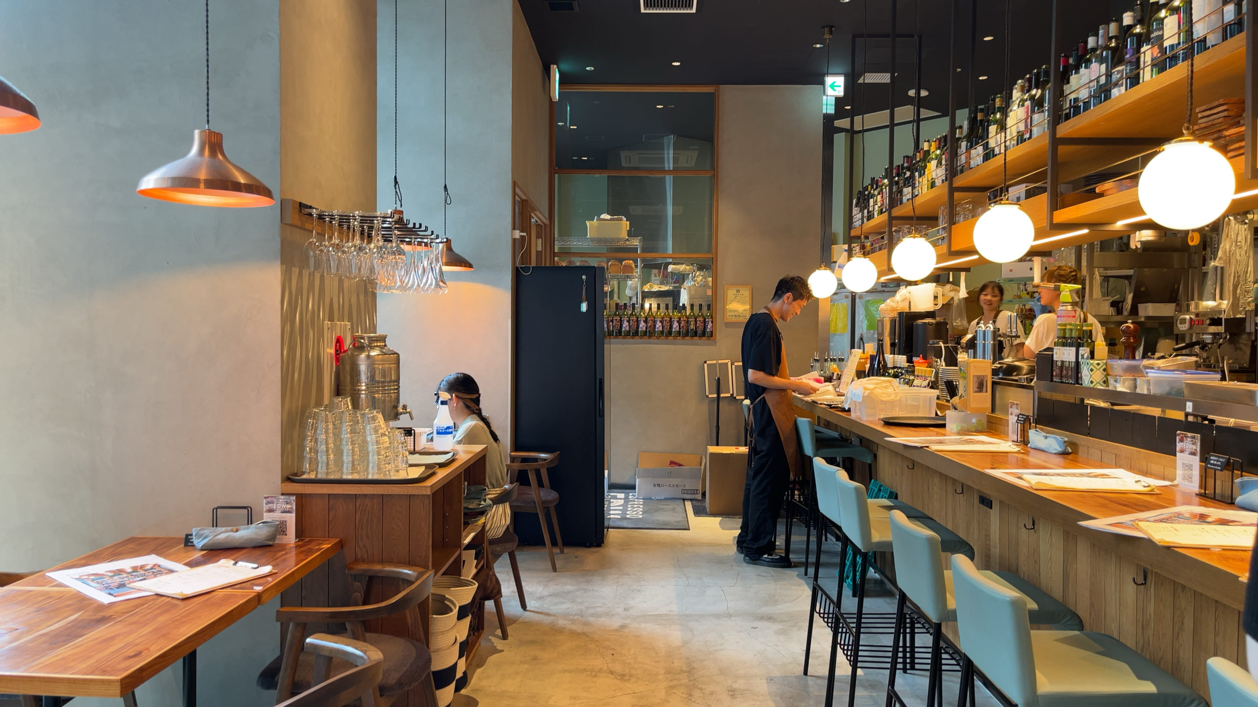 夕方まではカフェ、夕方からはイタリアンバルの二毛作営業スタイル。