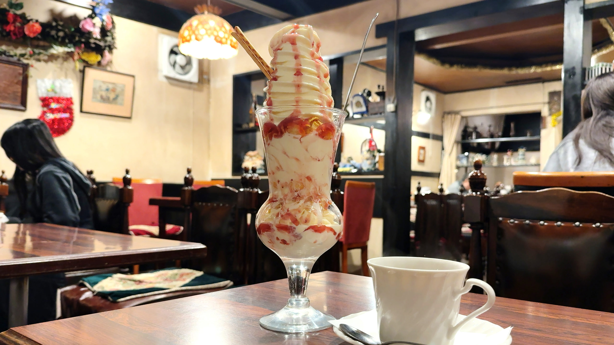 高さ60cm、総重量3.5kgのジャンボパフェが有名らしいのだが、季節は12月。