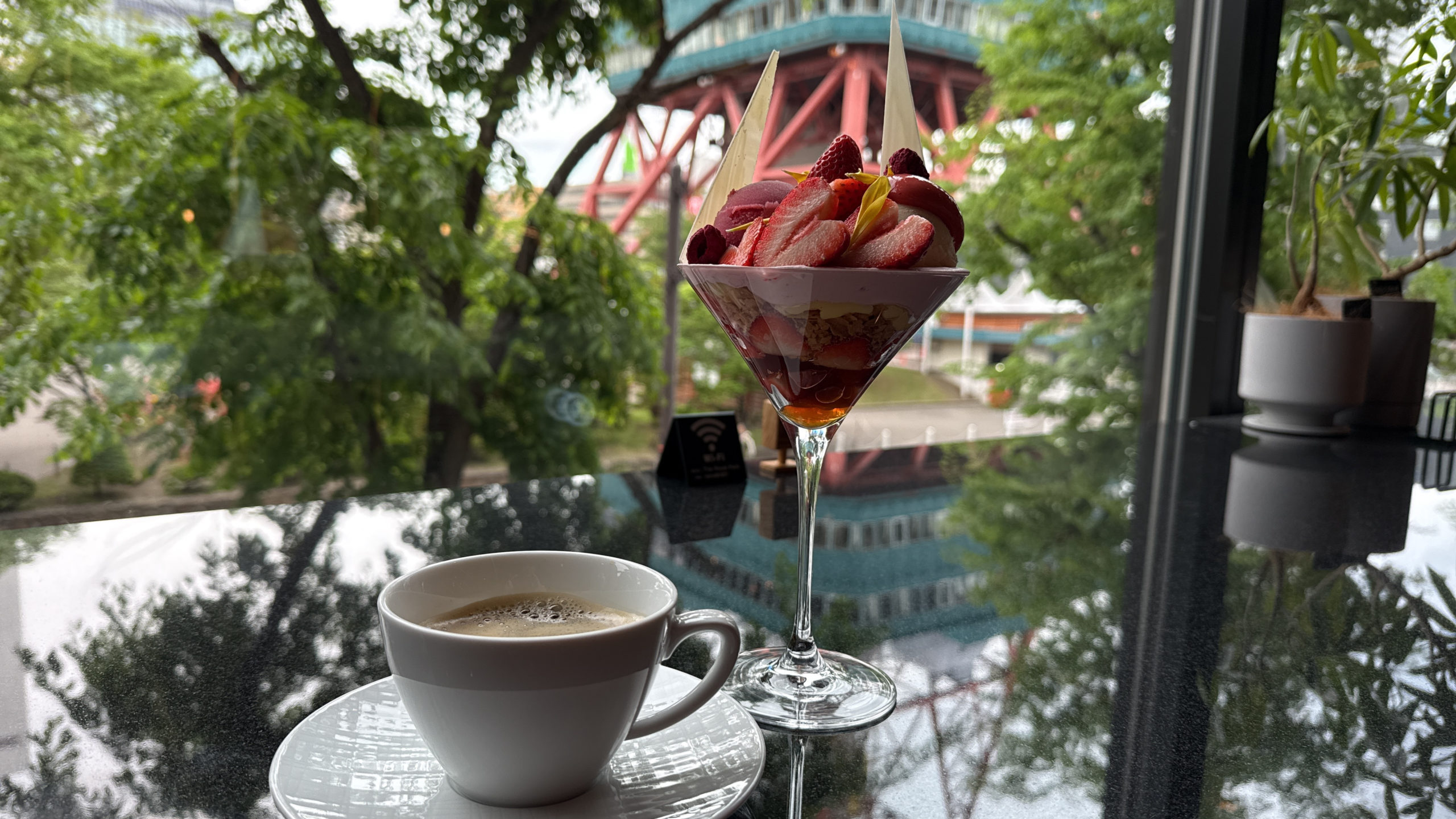 フランボワーズの深い赤とイチゴの鮮やかな赤、そしてテレビ塔の赤とがなんだかシンクロしている。