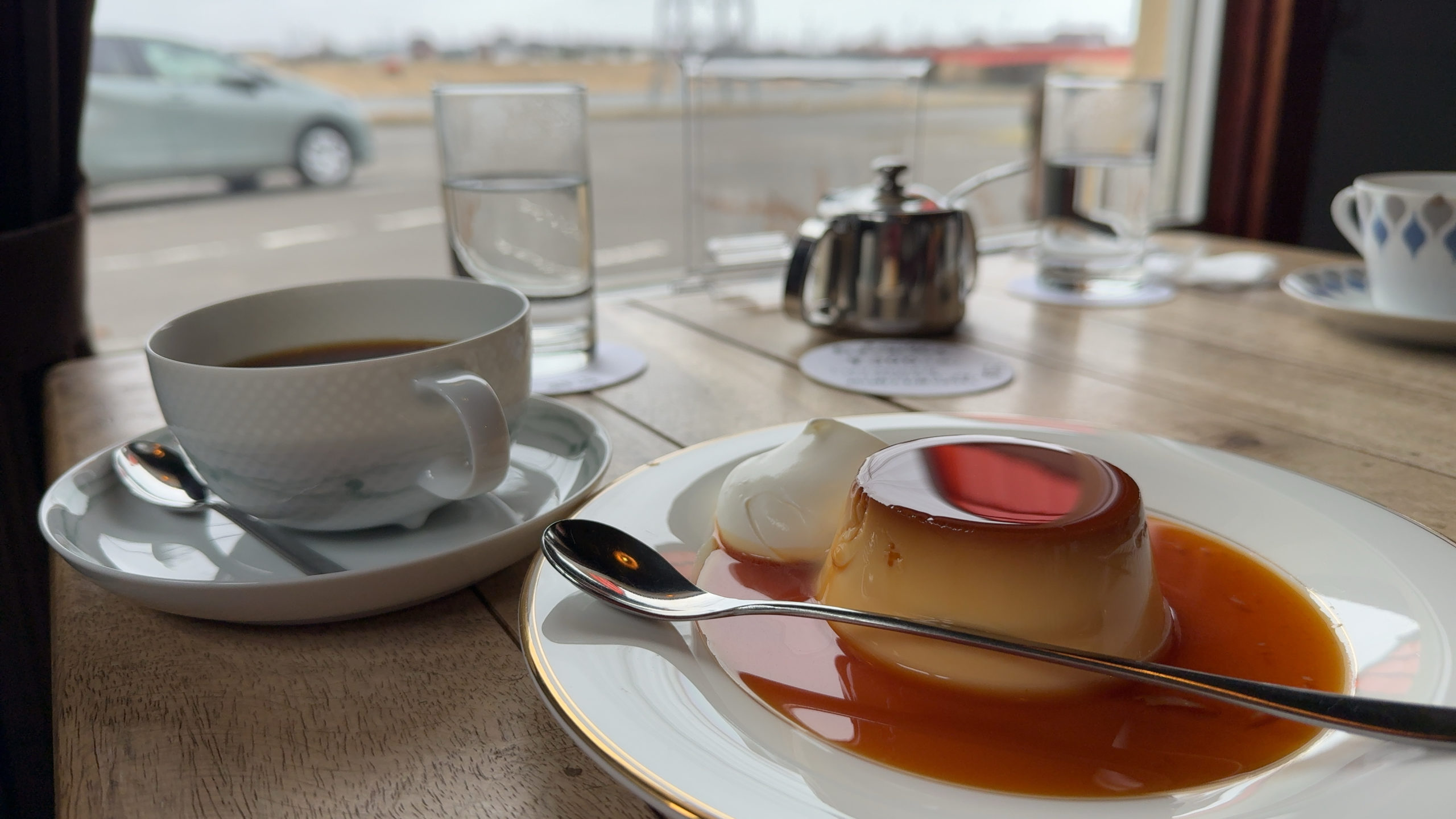 珈琲(濃いめ)とプリンとトーストを注文。